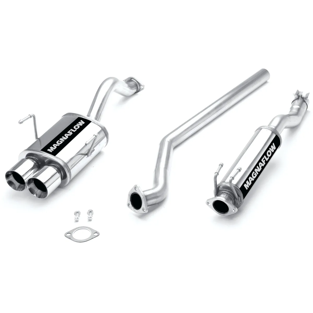 The MagnaFlow 2002-2005 Honda Civic Street Series Cat-Back Performance Exhaust System brings out the personality of your 2.0L 2002-2005 Honda Civic with our signature resonant, powerful engine tone and dyno-proven performance. Thanks to its fast-flowing, mandrel bent 2.25in. main piping and 2 Straight-Through mufflers ending in a Dual Straight Passenger Side Rear exit with 3.5in. Polished Welded-On Double Wall Straight Cut Folded Edge tips, this Honda Civic exhaust kit has the performance chops to match its sporty sound and appearance. Upgrade your ride to the next level with an exhaust that has the pipes to put other Honda Civic's to shame. With this system your vehicle will be producing Moderate exterior and Mild interior sound levels while leaving other cars and trucks feeling envious at every stoplight. Exhaust kit 15757 features a cat-back layout that replaces your ride's stock exhaust components from near the catalytic converter on back. Extensive 3D scanning during development has resulted in a direct-fit design that you can easily install yourself. 15757 is produced using CNC precision robotic manufacturing techniques and is backed by MagnaFlow's 1-year limited finish warranty and limited lifetime construction warranty.