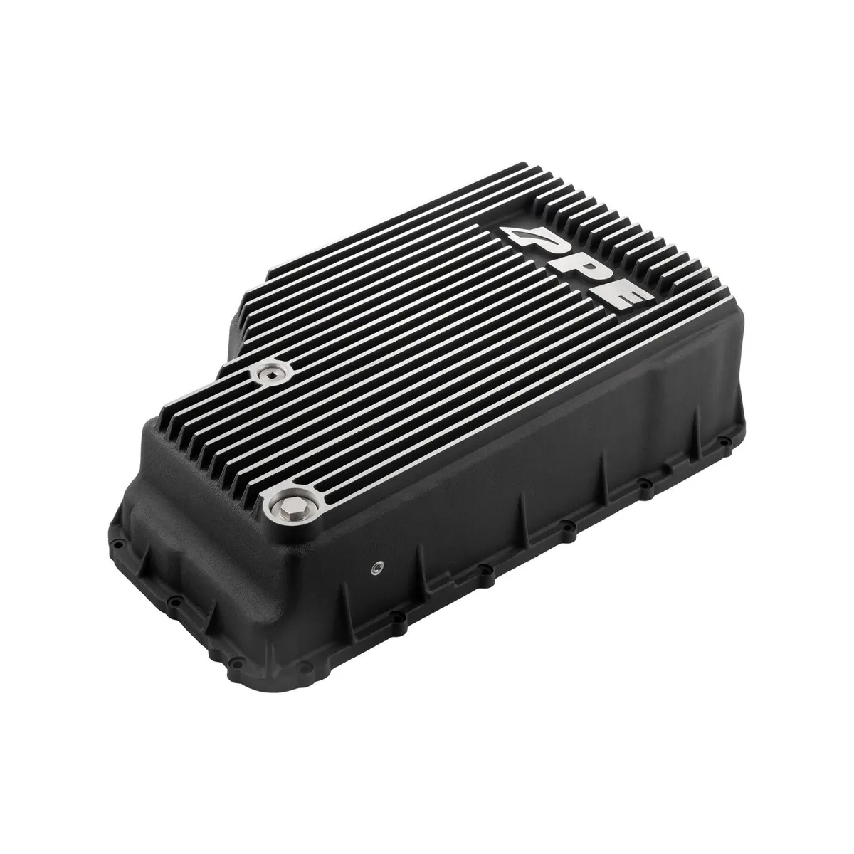 Elevate Your Ford 6.7L Power Stroke Performance with the PPE 10R140 Heavy-Duty Cast Aluminum Deep Transmission Pan. The 2020 and newer Ford Super Duty Power Stroke delivers an impressive 1050 lb-ft of torque, and up to more than 43,000 pounds of GCVR. With such increased torque and duty comes higher transmission load and heat. That's where the PPE Heavy-Duty Cast Aluminum Pan steps in, offering an additional eight quarts of fluid capacity to keep your transmission running smoothly and efficiently. Cast from high-grade A356.0-T6 aluminum alloy, the PPE Transmission Pan offers superior resistance to impact and warping compared to the factory plastic pan. Its robust construction ensures long-lasting protection and performance. The deep external cooling fins maximize the heat-wicking surface area, effectively dissipating heat to keep your transmission cool under pressure. The built-in baffles at the bottom of the pan increase the contact area between the fluid and the pan's cast surface, enhancing its heat transfer capabilities. These baffles also minimize fluid sloshing, ensuring consistent fluid pickup and stable transmission performance. The CNC-machined gasket groove guarantees an OEM fitment for the rubber gasket, while a non-reusable flat gasket is also included for quick and easy sealing. The PPE Transmission Pan includes a fluid level check standpipe and a fluid fill adapter. With just a fluid dispenser and a 3/8 inch hose, transmission fluid services can be easily managed. The billet stainless steel drain plug is equipped with a powerful neodymium magnet that captures ferrous particles, providing additional protection for your transmission. Keep your Power Stroke's 10R140 transmission running longer, healthier, and cooler with PPE.