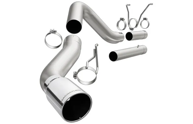 The MagnaFlow Ram PRO DPF Series 17874 utilizes it's weight-optimized, durable, corrosion resistant stainless steel design to enhance your truck with MagnaFlow’s signature sound and dyno-tested performance. 17874’s 5in. diameter mandrel bent main piping features a muffler delete and terminates in a Single Passenger Side Rear exit with 6in. Polished Welded-Single Wall-Angle Cut-Rolled Edge-Intercooled tips. This emissions-legal filter-back exhaust kit has been tuned to create Mild interior and Moderate exterior sound levels. Exhaust system 17874 is emissions-legal and produced using CNC precision robotic manufacturing techniques that result in a direct-fit design that you can install yourself, all backed by MagnaFlow’s limited lifetime warranty.