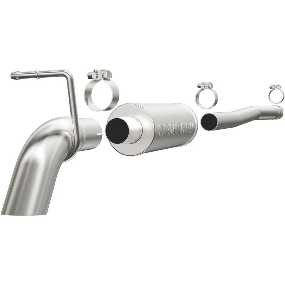 The MagnaFlow Off-Road Pro Series Cat-Back Performance Exhaust System 17143 brings additional off-roading prowess and our deep signature exhaust note to your 3.6L 2012-2018 Jeep with a weight-optimized, dyno-tested, corrosion resistant and durable stainless steel design engineered to closely hug the undercarriage for improved ground clearance. Exhaust kit 17143 is engineered to produce Very Aggressive exterior and Aggressive interior sound levels. Extensive 3D scanning was used during the development of this Jeep exhaust system to create a direct-fit design, enabling a do-it-yourself installation process. 17143's emissions-legal cat-back design replaces all your truck's exhaust components from the catalytic converter on back with its 2.5in. diameter mandrel bent main piping that passes through 1 Straight-Through mufflers before ending in a turndown before rear axle exit with 3in. Satin Clamp-On Single Wall Turndown Cut Edge tips. Exhaust system 17143 is produced using advanced CNC precision robotic manufacturing techniques and backed by MagnaFlow's limited lifetime warranty.