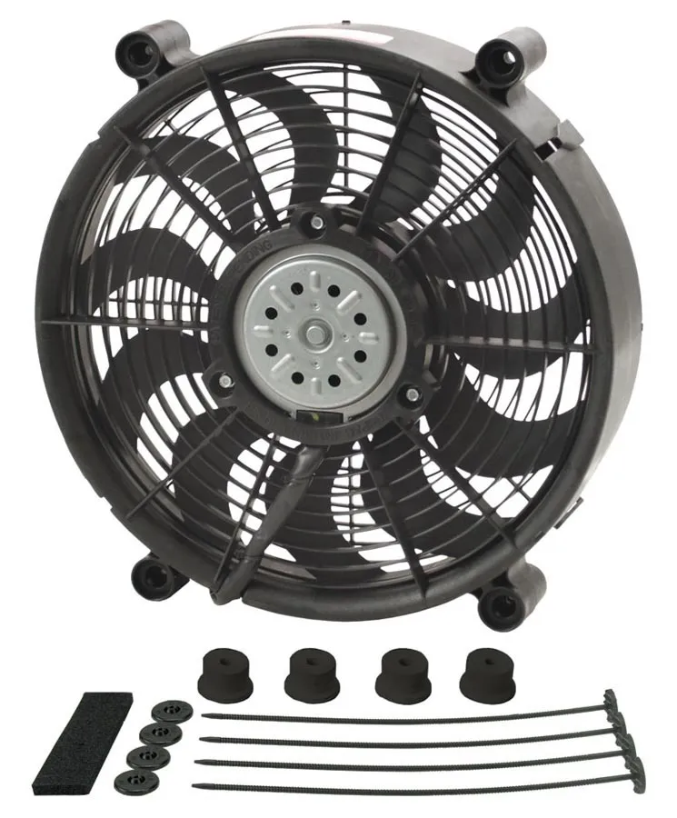 Electric Cooling Fan - HO RAD - 12 in Fan - Push / Pull - 1450 CFM - 12V - Curved Blade - 12.75 in Square - 2.625 in Thick - Install Kit - Plastic - Kit