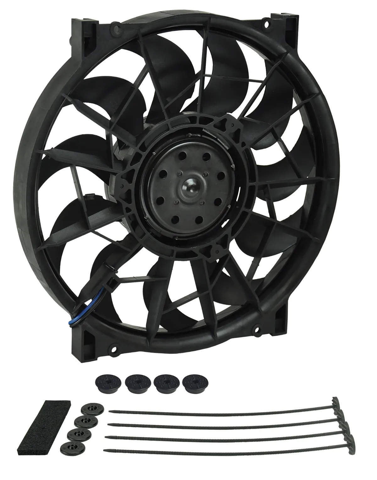 Electric Cooling Fan - HO RAD - 12 in Fan - Push / Pull - 2000 CFM - 12V - Curved Blade - 12.625 x 12.625 in - 3.125 in Thick - Install Kit - Plastic - Kit