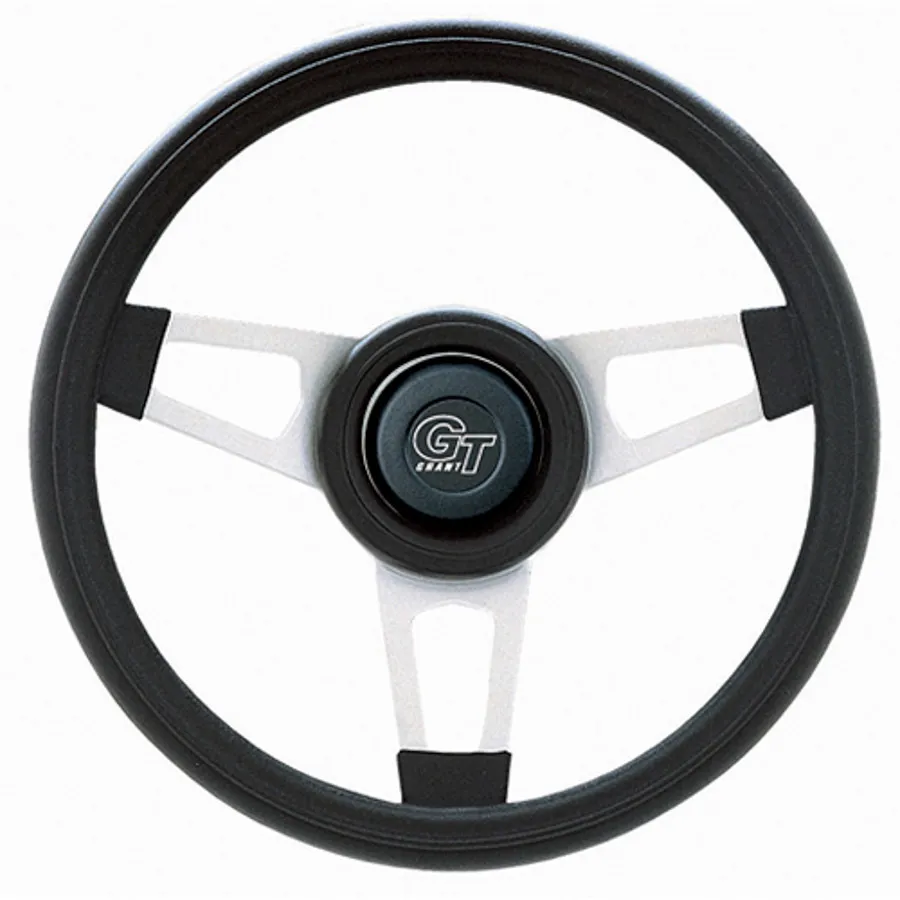 Steering Wheel - Challenger Series - 13.75 in Diameter - 2.25 in Dish - 3-Spoke - Black Foam Grip - Steel - Silver Paint - Each