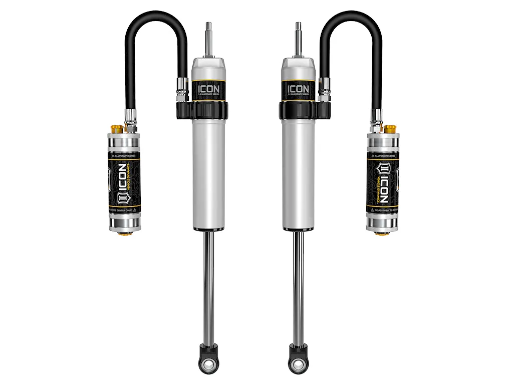 ICON Vehicle Specific 2.5 Aluminum Series shocks are designed and built to give your vehicle outstanding performance off-road and a smooth ride on the street. These shocks are configured specifically for each application in both length and damping tune. Like all ICON'S Shock Absorbers, 2.5 Aluminum Series shocks are 100% rebuildable and 100% revalveable. For piggyback and specific remote reservoir applications, ICON'S unique use of a 6061 billet aluminum manifold a few inches below the top cap of the shock creates an internal Bump Zone that when used creates an additional 20% of damping force. This additional force helps prevent harsh bottom outs and controls the suspension when compressing at high velocity. The ICON CDC Valve is an externally adjustable valve that restricts oil flow into the reservoir which creates 10 levels of compression damping force ranges.