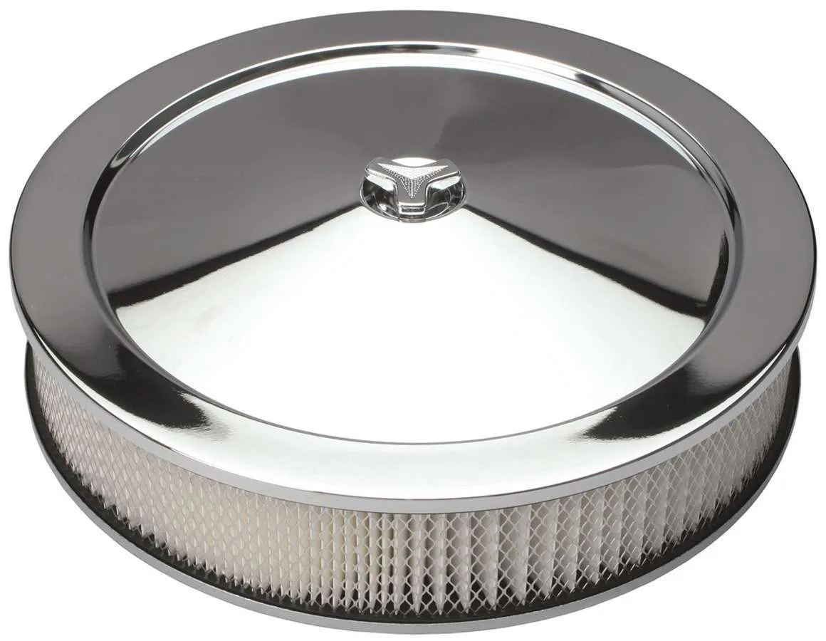 Air Cleaner Assembly - Muscle Car - 14 in Round - 3 in Element - 5-1/8 in Carb Flange - Dropped Base - Steel - Chrome - Kit