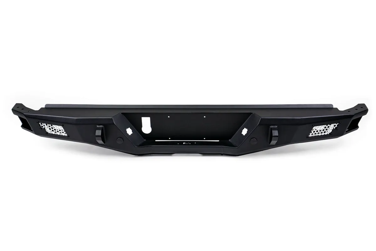 Our low profile MTO Series Tacoma Rear Bumper was designed as a direct replacement to the factory bumper, with no cutting or modification required for installation. It brings the addition of 2 reinforced clevis mounts that take ¾-inch D-rings, providing you with recovery options. A 3-inch light pod can be mounted behind the aluminum mesh panels towards each end of the bumper. These panels can be removed and painted, or left in their raw aluminum color. At each corner of the bumper is a side step, as well as a step at the middle of the bumper, giving you multiple options to hop up and access the cargo in your truck bed. Our bumper is compatible with factory rear parking sensors and retains full functionality. The blind spot detection module does not function with this bumper.