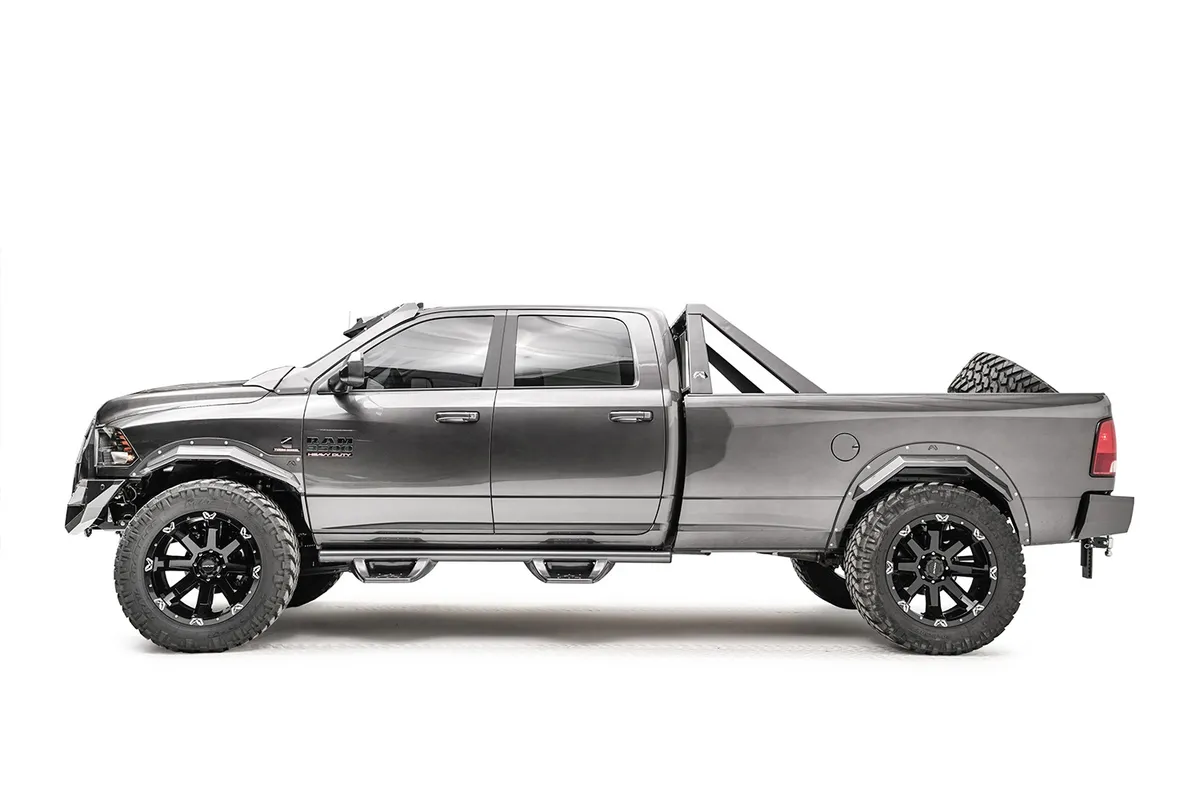 Ability to run up to 40 tires with a leveling kit (not included),Maintain Ease of Hauling,Retain the Ability to Easily Get In and Out of Vehicle,Fab Fours 2 Stage Matte Black Powder Coat,Aggressive Stance While Maintaining Smooth Factory Ride,100% Made in the USA,Open Fender System,Professional In Depth Installation Manual and Video,Professional Wrap Grad Templates,Eliminates the Need for a Dropdown Trailer Hitch,Inner Fender Included,11 gauge U.S. Steel Construction