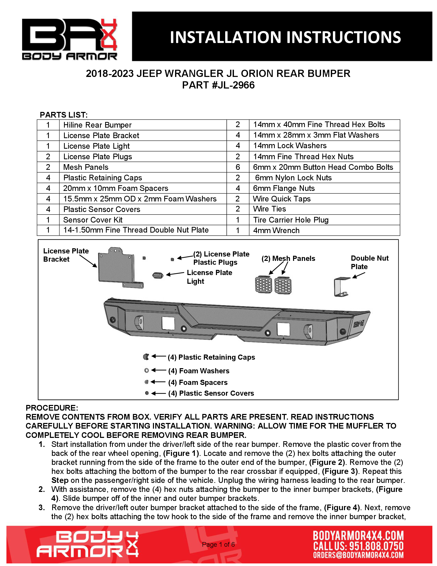 Body Armor 4x4 JL-2966 Body Armor 4X4 Orion Rear Bumper