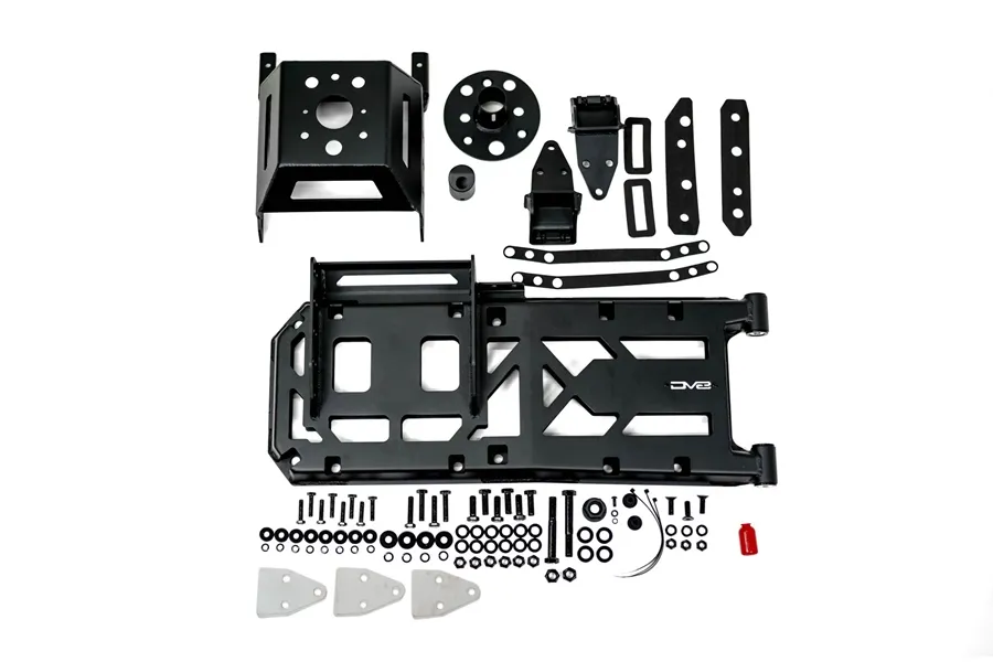 * Please Note: The tire carrier can fit up to a 20-inch wheel and a 38” x 13.5” tire. We recommend using the carrier with wheels that have a 4+ inch backspacing, as it is not compatible with -44 offset wheels. The carrier is not compatible with wheels wider than 9.5-inches. It can be used with factory wheels with 2" or larger wheel spacers. ** Please Note: Xtreme Recon and Rubicon X models will require DV8’s Camera Extension Bracket to retain the use of the factory rear camera. *** Please Note: The carrier is not compatible with models that feature the Mopar On-Board Air Compressor option.