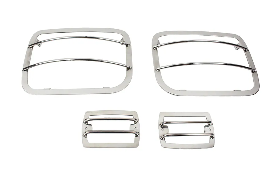 Fits 1987-1995 Jeep Wrangler YJ Crafted from premium T-304 stainless-steel. Polished Stainless Steel Package comes with all necessary installation hardware. Protected by Kentrol's Limited Lifetime Warranty. 4 Piece set Enhance the appearance and protection of your 1987-1995 Jeep Wrangler YJ with Kentrol's Light Guard Set, consisting of four meticulously crafted pieces. These light guards are precision-engineered using premium T-304 stainless steel and boast a polished stainless steel finish, elevating the aesthetics of your vehicle. Each set of Light Guards is subjected to a stringent inspection process to ensure a flawless fit, impeccable finish, and optimal functionality. The package includes all the necessary installation hardware for a hassle-free setup. To maintain the mirror-like polished finish, occasional waxing is all that's needed to keep your light guards looking as good as new. Rest assured, these light guards are protected by Kentrol's Limited Lifetime Warranty, a testament to our unwavering commitment to quality and customer satisfaction. With a legacy spanning over three decades, Kentrol has consistently raised the industry standard by producing top-tier stainless steel accessories for your Jeep. Our products are exclusively crafted from T-304 stainless steel, and each part undergoes a comprehensive 100% inspection process before shipping, ensuring you receive nothing but the highest quality. Whether you prefer the timeless allure of a polished finish or the rugged durability of a black powder-coated one, Kentrol offers accessories designed to meet your specific needs. Elevate your Jeep's style and protection with Kentrol's Light Guard Set, where quality and longevity are our guiding principles.