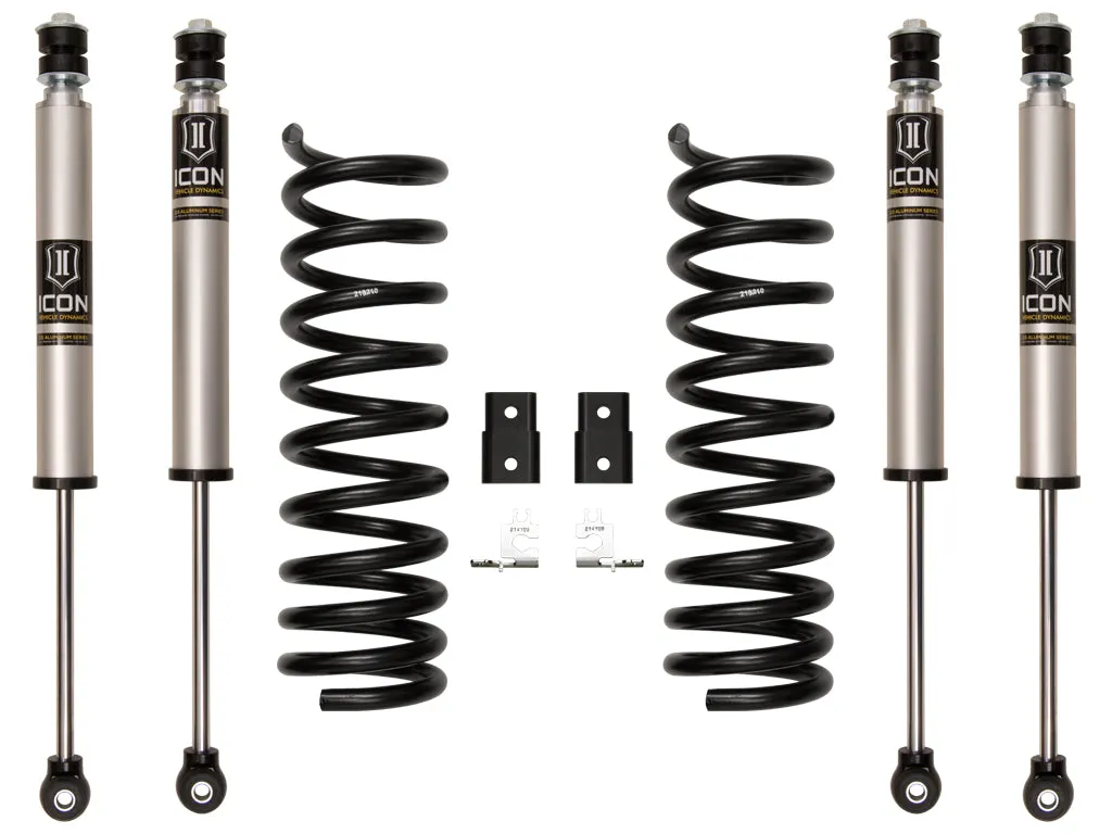 ICON's 2014 RAM 2500 4WD 2.5โ Stage 1 Suspension System is made up of dual rate front coil springs, necessary bracketry and hardware, as well as 2.0 Aluminum Series front and rear shocks. This entry level system increases ride quality and performance both on and off road. The ICON stage 1 system is great for towing, rough construction site terrains, and country dirt roads all while keeping a smooth highway feel. With the endless hours ICON has spent testing and tuning our suspension components and shocks as a complete package, you can rest assured you have the best suspension solution on the market.