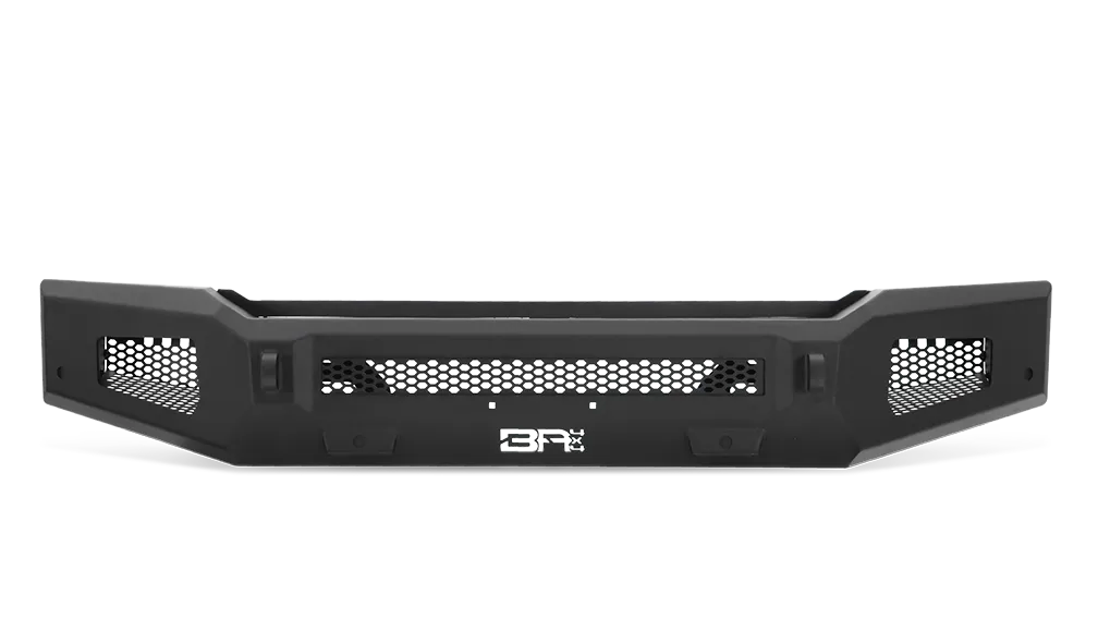 Conquer any terrain with the Body Armor 4x4 Ambush Series Front Bumper. Equipped with two welded D-ring mounts, it prepares your truck for tough recovery situations both on and off the road. Designed to integrate seamlessly with OE sensors, this bumper eliminates the need for sensor relocation during installation. Its bold, rugged design ensures your truck stands out, making a statement wherever your adventures take you. Features & Benefits Construction Built from 3/16" and 1/4" cold roll steel for durability. Bolt-On Installation Easy bolt-on installation; compatible with OE sensors. Recovery Points Features two welded D-ring mounts for recovery. Light Fitment Accommodates a 30" dual row LED light bar and 2 LED cube lights. Powder Coat Two-stage light texture black powder coat finish for protection. Non-Winch Compatible No provisions for a winch.