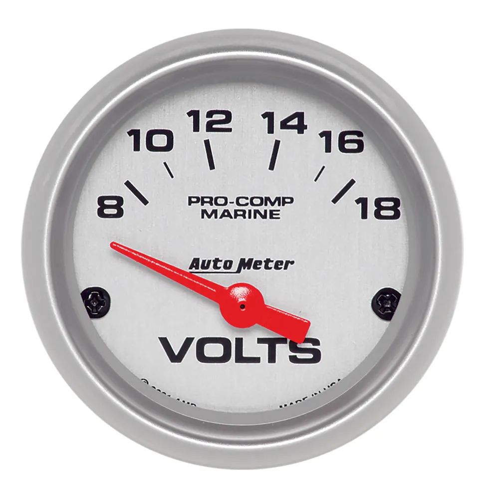 Voltmeter - Ultra-Lite Marine - 8-18V - Electric - Analog - Short Sweep - 2-1/16 in Diameter - Silver Face - Each