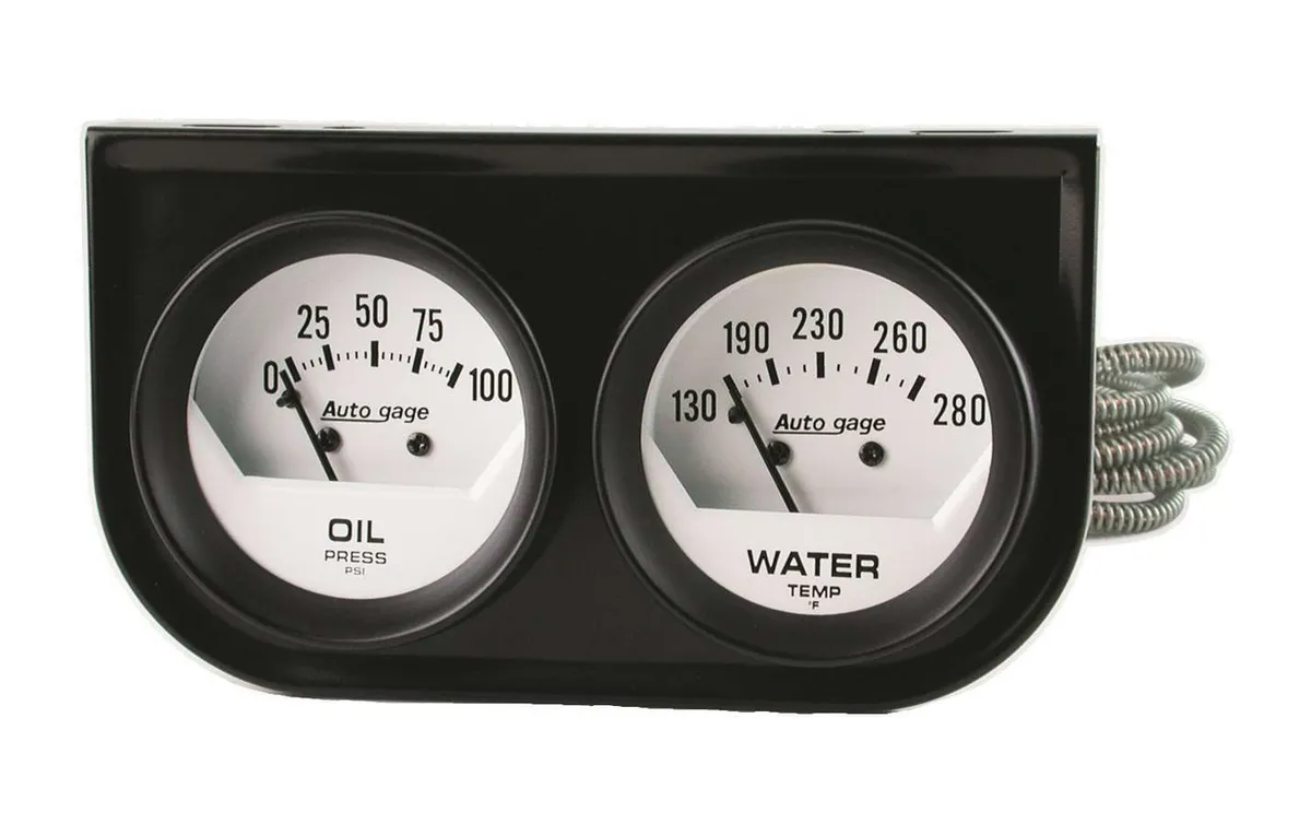Gauge Panel Assembly - Auto Gage - Analog - Oil Pressure / Water Temperature - 2-1/16 in Diameter - White Face - Kit