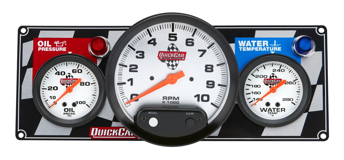 Gauge Panel Assembly - Oil Pressure / Tachometer / Water Temperature - 5 in / 2-5/8 in Diameter - Silver Face - Warning Light - Kit
