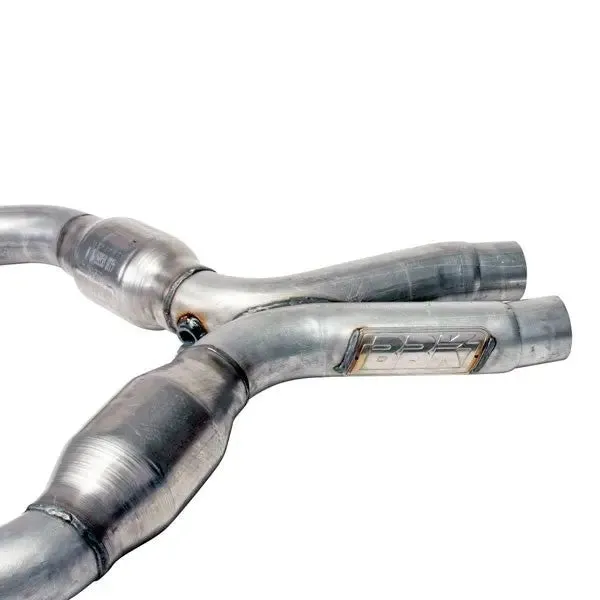 - See Part #1676 Complete Your Long Tube Header Install Crank up the power potential of your 2005-2010 Ford Mustang GT with this BBK Performance catted short x-pipe. This BBK x-pipe will dramatically increase the sound of your Mustang to a roar that will be sure to turn heads. Not only is this x-pipe required to finish your long tube header install, it further improves exhaust flow, increasing horsepower, torque and throttle response. High Quality BBK Performance short x-pipes are designed from 2-3/4" mandrel bent steel tubing with high flow catalytic converters for maximum exhaust flow. The x-pipe features rear oxygen sensor bungs in the factory location making installation a breeze. Installation The x-pipe is designed to be used with BBK long tube headers only. Emissions Information This part is NOT CARB Approved and cannot be installed for us on any emission controlled vehicle in California. It cannot be shipped to any California resident or addressee.