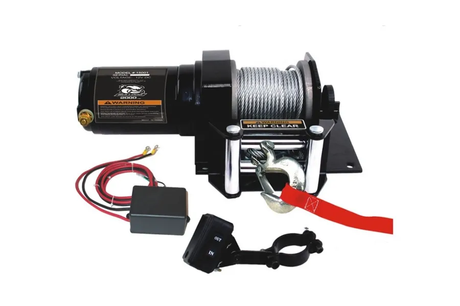 2,000 LB ATV Winch 50 Ft Wire Rope W/Mini Rocker Switch Mounting Channel Roller Fairlead from Bulldog Winch. Side Drum motor and gear box mounted on one side of drum. 2-bolt mount on center line of drum. Popular Value Priced. Details: Pull capacity: 2,000 LB 5/32 x 50 Foot Wire rope Motor: 1.0 HP