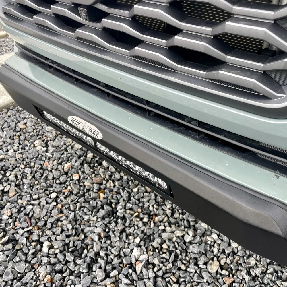 Rock Slide Engineering gives you a sleek, finished look with the new tacoma Front Bumper. It is built with 11-gauge steel, designed to follow factory lines and mate up with the front fascia. The bumper will provide some protection to the front end of the tacoma during approach angles when you are out wheeling. Comes with an integrated cutout for a 20-inch light bar to be mounted in the front bumper.