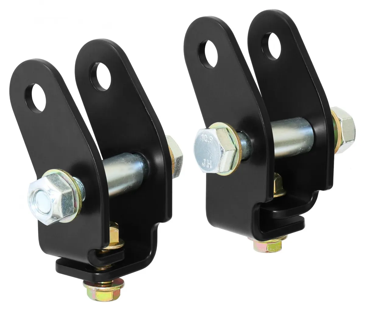 RockJock's Jeep JT Gladiator Mojave Front Shock Relocator Brackets are designed for use with our 1 1/2 inch JT Mojave Spacer Lift Kit. These brackets allow you to retain your Mojave's factory installed Fox shocks when installing the 1 1/2 inch lift. Simply unbolt your shocks install these relocator brackets into the factory shock mounts on the axle housing and then reinstall your shocks into the relocator brackets! Brackets are finished in semi-gloss black powder coat and include all necessary hardware.