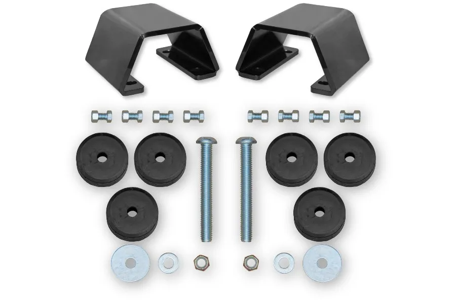 One of the most commonly overlooked items when putting together your own suspension lift kit is that of the bumpstops. As the distance between the axles and frame increases, the need to supplement the positioning of your bumpstops is imperative to ensure that you don't overcompress your suspension. Fortunately, Rock Krawler has put together this kit that includes all of the necessary components and hardware to accomplish just the right amount of adjustment for either a 3" or 4.5" lift.