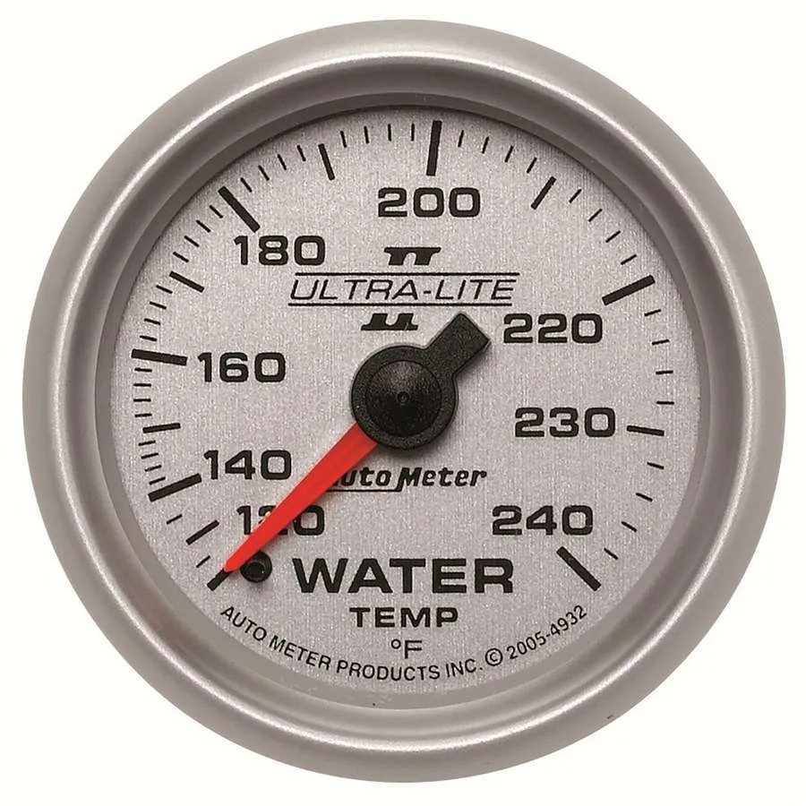 Water Temperature Gauge - Ultra-Lite II - 120-240 Degree F - Mechanical - Analog - Full Sweep - 2-1/16 in Diameter - Silver Face - Each