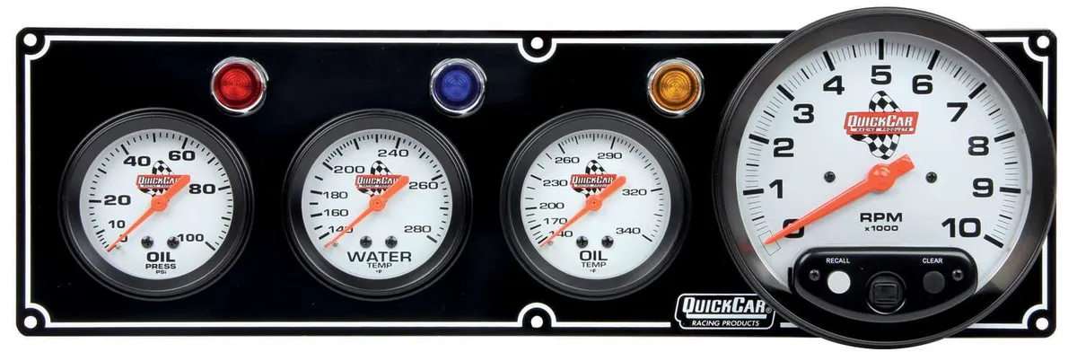 Gauge Panel Assembly - Oil Pressure / Oil Temperature / Tachometer / Water Temperature - 5 in / 2-5/8 in Diameter - Silver Face - Warning Light - Kit