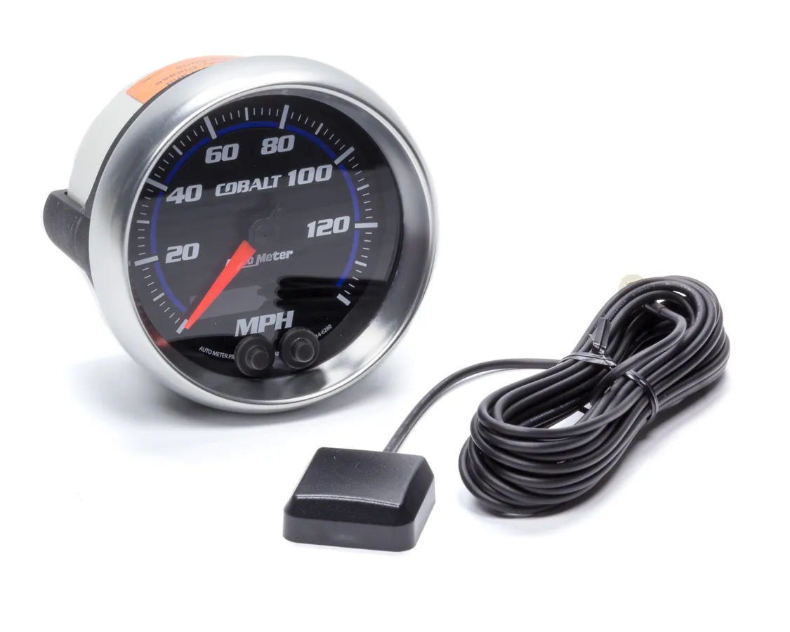Speedometer - Cobalt - 140 MPH - Electric - Analog - 3-3/8 in Diameter - GPS Tracking - Black Face - Each