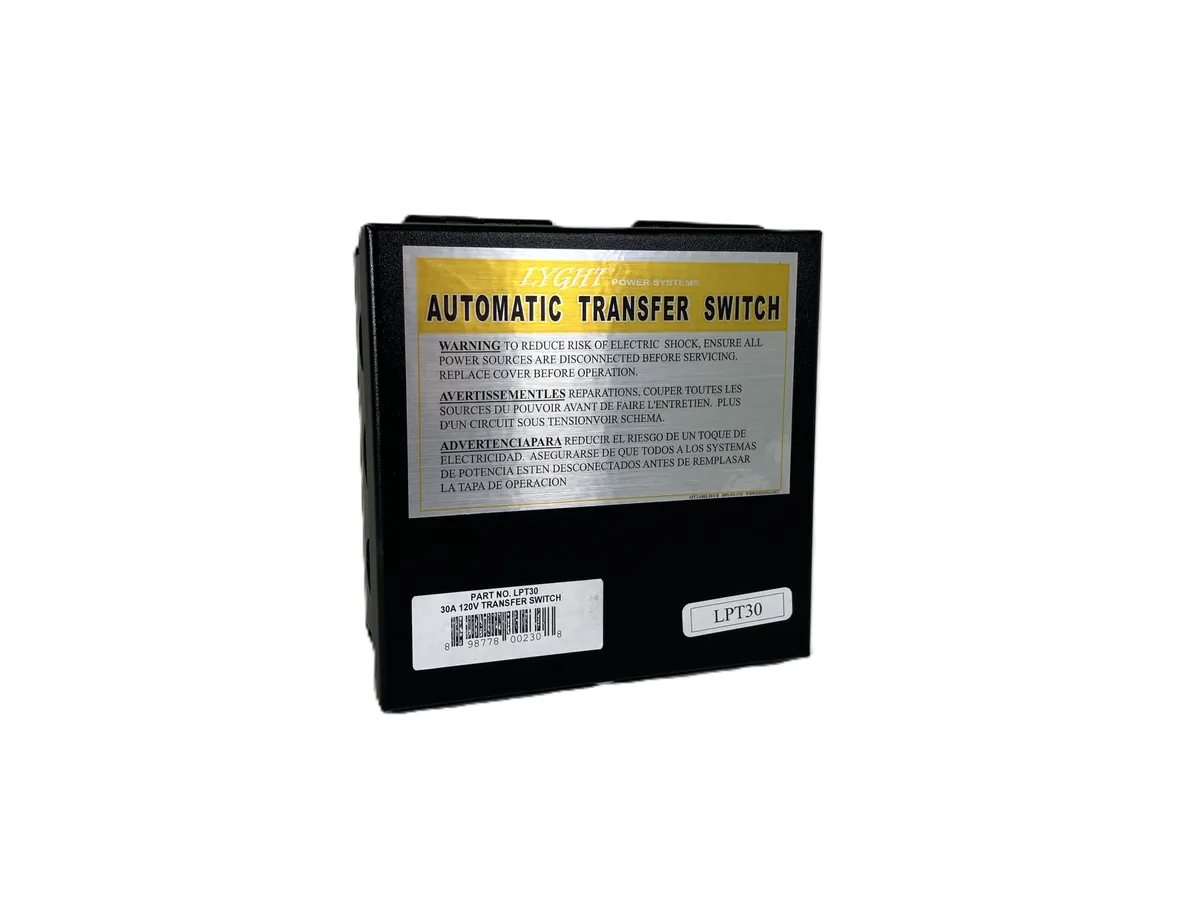 The LPT30 is designed to automatically switch between multiple power sources, such as shoreline power, generator power, or electronic inverter to shoreline/generator. It is primarily intended for use with generators up to 4.5kW, external power cords up to 120VAC, 30A, 1PH, 60HZ, and electronic inverters up to 3600 watts.