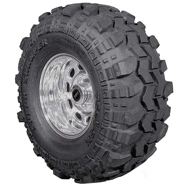 The Super Swamper TSL/SX incorporates the Super Swampers distinctive chevron tread pattern and famous, trademarked and patented Interco TSL (three-stage lug) tread design. The TSL/SX is designed for extremely tough off road conditions where sidewall strength and protection is needed to withstand the severe scuffing from running in ruts and snagging roots and rocks. The TSL/SX has a strong nylon or polyester bias ply body with dual belts under the tread and wrap-a-round lugs. The sidewall lugs not only protect the sidewall but also provide extra traction when climbing out of ruts. The Super Swamper TSL/SX offers unsurpassed traction under the toughest of conditions and gives Offroad Tires enthusiasts a tire that is both directionally and laterally stable and unmatched in performance. Super Swamper TSL tires are D.O.T. approved Offroad Tires, purpose built tires that also provide a smooth on-road ride. TSL/SX tires are available in over 29 wheel size and width combinations including three, non-D.O.T. approved, Offroad Tires and competition only Sticky. Note that the Super Swamper TSL/SX unique design requires strict attention to air pressure when run on the highway, and actual tread patterns may (slightly) vary based on Tire Size .
