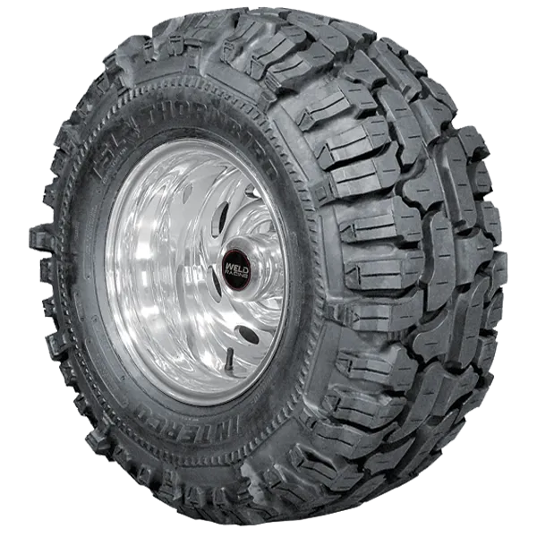 The Interco TSL Thornbird is one of the most aggressively designed Offroad Tires style tires for light trucks, jeeps and SUVs on the planet, and arguably the best looking one too. The Thornbirds gnarly 3 stage sidewall lugs (TSL) do not touch highway surfaces but as soon as the tire gets into mud or snow they provide decisive traction in forward or reverse. The intimidating tread design utilizes fiberglass belts under the tread that offers a wide highway contact area, together with polyester body plies contribute to a really smooth comfortable ride you wouldnt expect from such an aggressive Tire. The combination of its unique side-wall lugs and tread design make the Thornbird extremely versatile and comes close to making it two tires in one. Interco Thornbirds are offered in a variety of sizes combinations that come with either a 6 or 8 play rating (dependent on size combination). Thornbirds were not designed to replace the Bogger or the Super Swamper, but rather to offer the consumer a tire that performs well off and on road. Thornbirds are without a doubt a member of Interco Tire Corporations legendary tire line-up.