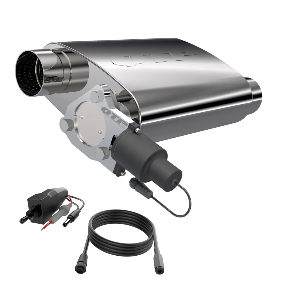 Muffler - Screamer Twintronic - 3 in Offset Inlet - Dual 3 in Outlets - 17.25 in Long - Adjustable Electronic Valve - Stainless - Brushed - Universal - Each