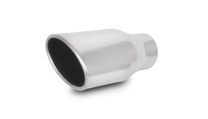 Exhaust Tip; Oval Rolled; 4.5 in. x 3 in. Outlet Size; 2.5 in. Inlet ID; 7.75 in. L; 304 Stainless Steel; Single Wall Angle Cut;