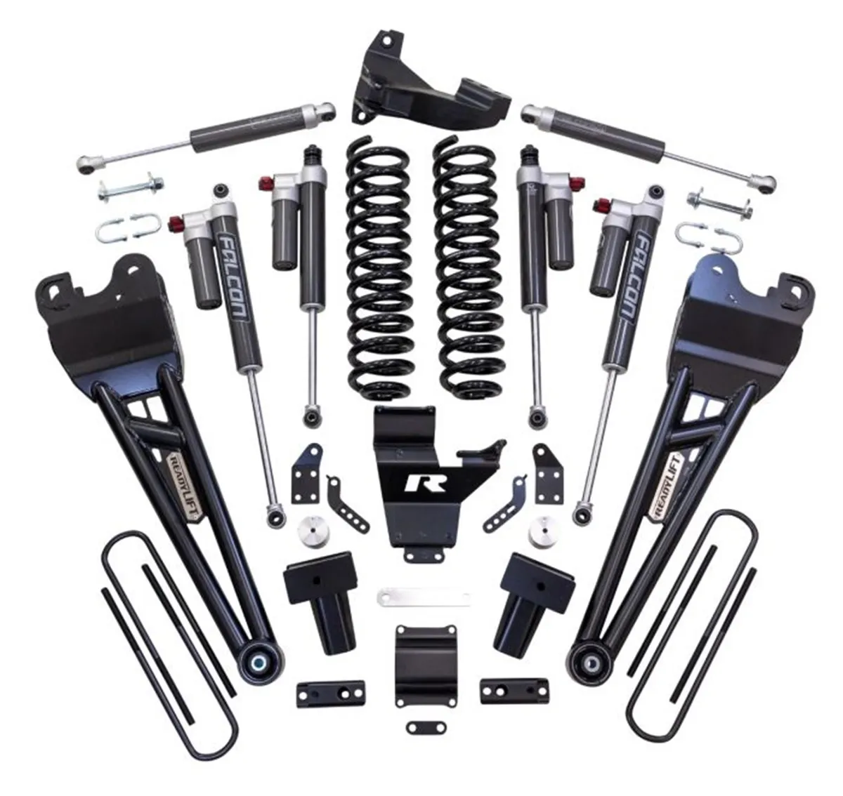 ReadyLIFT Suspension is pleased to announce a new Super Duty lift kit. We are now offering our first 4" Coil Spring Kit including Tubular Radius Arms Falcon Dual Steering Stabilizer and the new Falcon 3.3 piggyback shocks. This gives Super Duty owners an excellent alternative for lifting their