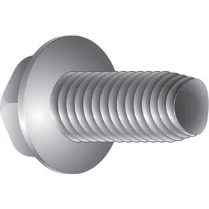 - Unslotted Drive Indented Hex Washer Head Zinc Finish Steel Thread Rolling Screw Notes The Hex Washer Head has a flat washer that extends beyond the sides, providing it with a greater bearing surface than a normal hex head fastener. The washer and the Hex Head are bonded together as one piece; this offers greater protection to the mating surface than a standard hex head. The increased bearing area decreases the likeliness of crushing mating surfaces. Trilobe, or Thread Rolling, screws have a blunt tapered point that requires a pre-drilled or punched hole; eliminates chips and permits replacement with standard screw. Zinc plating, retards the corrosion rate in a normal atmosphere. System of Measurement Imperial (Inch) Material Steel Head Indented Hex Washer Drive Hex