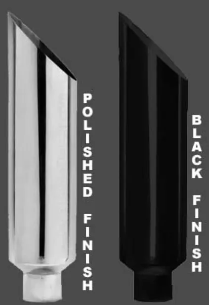 5 inch OD inlet x 36 inch long Install Method: Clamp-On Material: 304 Stainless Steel Finish: Polished Sold As: Each 304 Polished Stainless Miter Cut Top Finishes Off Your Truck Stack Designed To Look Great For The Life Of Your Truck Lifetime Warranty