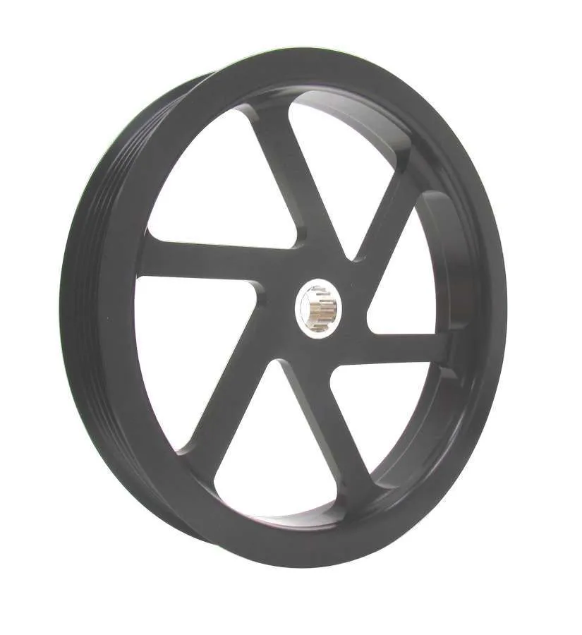 Power Steering Pump Pulley - Serpentine - 6-Rib - 17 Spline - 6 in Diameter - Aluminum - Black Anodized - KRC Power Steering Pumps - Each