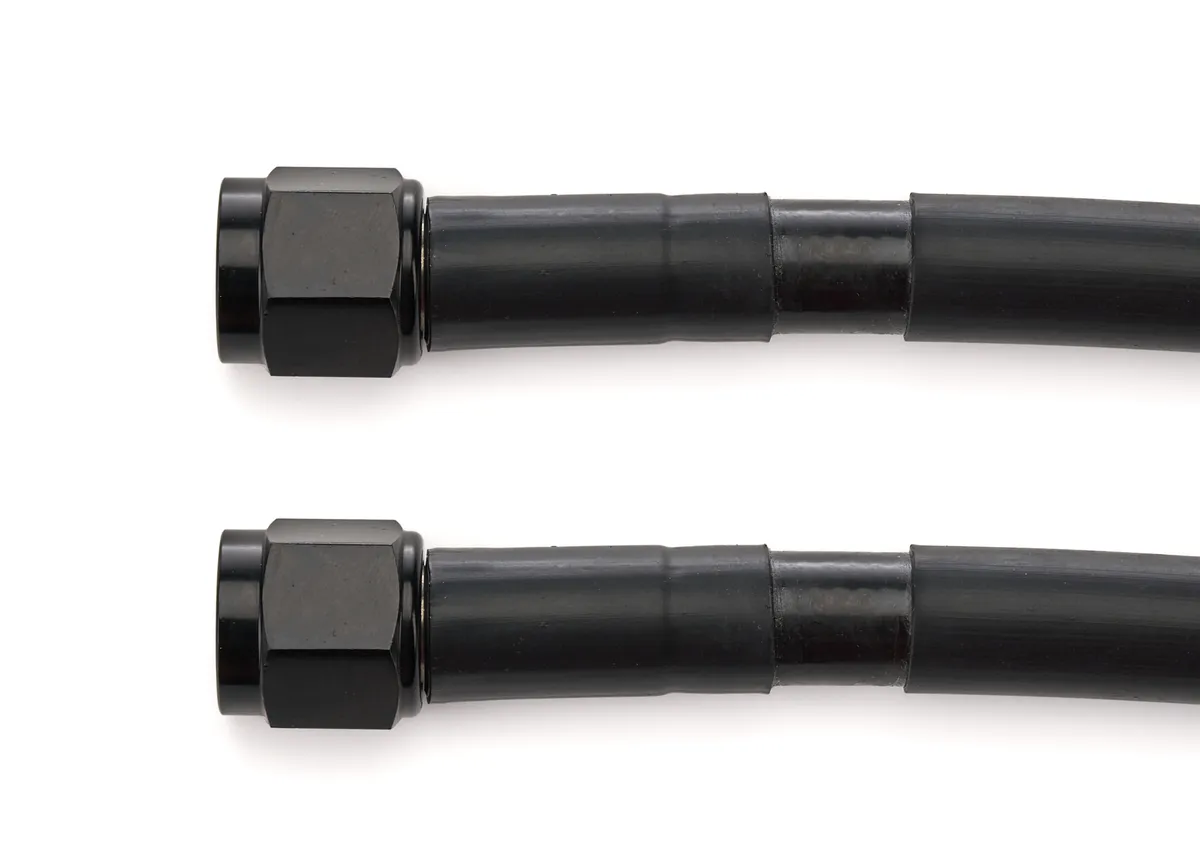 AN Hose Assembly - 902 Series - 6 in Long - 6 AN Hose - 6 AN Straight Female to 6 AN Straight Female - Braided Stainless - PTFE Lined - Coated - Aluminum - Black Anodized - Each