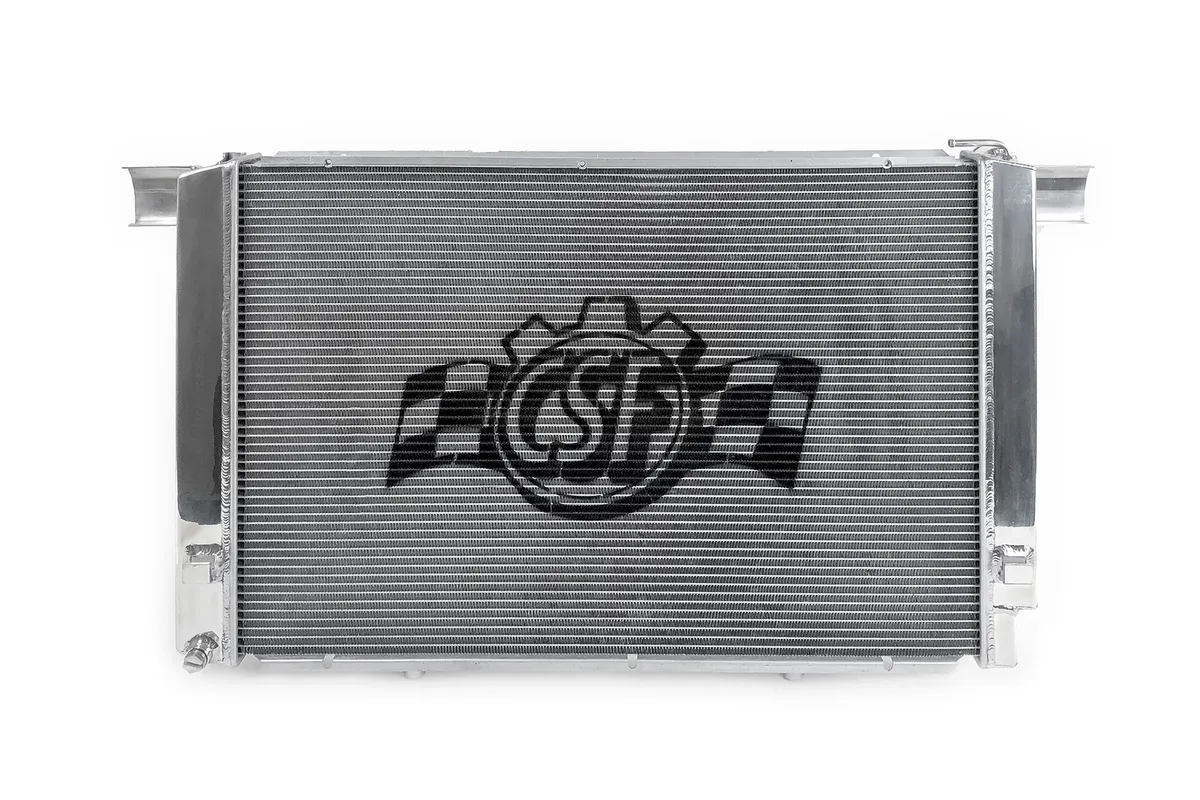 Click Here for the Full Press Release CSF has over 5 decades of experience manufacturing radiators. So when it comes to keeping your engine cool and your SL500 running at its best, a CSF High-Performance All-Aluminum Radiator is the obvious choice. Designed to perform on the street or at the track, a performance radiator is a must-have for both high horsepower builds as well as race vehicles which need added cooling performance in motorsports environments. This radiator features a 2-Row core with CSF's exclusive B-Tube Technology: Unlike a regular oval shape "O" type radiator tube, CSF uses a specially engineered tube in the shape of a "B". These "B-tubes" are carefully formed and then brazed over the seam to seal. CSF is able to use thinner and lighter aluminum material (with better cooling efficiency) because this design is actually stronger than normal "O" shape tubes that are welded. The design (inlet in the middle of the tube that is seam brazed) increases the heat transfer surface area of the tubes by approximately 15% over regular tubes - producing the efficiency of two smaller tubes vs. one large tube within the same space criteria. With "B-tubes" you are able to get "dual liquid laminar flow". CSF also uses ultra efficient multi louvered fins that are carefully and precisely aligned to maximize airflow through each radiator core. Fin specifications are carefully measured and calculated for each application, and tested for maximum heat rejection efficiency in our wind-tunnel lab. The CSF SL500 radiator is a true "Drop-in fit" design requiring no modifications to install. OE style brackets are all CNC machined and welded for the best durability possible. Inlet/Outlet connections are designed to match the OE connections so you can reuse OEM hoses or aftermarket. Trust the cooling experts at CSF for the best performing, highest-quality, and most reliable radiators. Features 2-Row 42mm Core (Dual Core) Featuring CSF's Exclusive B-Tube Technology Core Features an Ultra-Efficient Fin with 6.5mm Fin Height and Multi-Louvered Design for Maximum Surface Area Contact CNC Machined "Quick-Connect" Inlet/Outlet Connections CNC Machined Brackets and Fittings for Superb Fit and Durability All-Aluminum Race Style Drain Plug Smooth Satin Finish "Drop-in Fit" Requiring No Modifications to Install