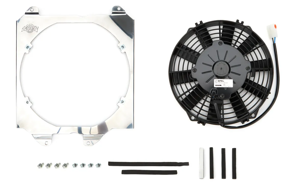 This optional all-aluminum fan shroud with 12" high-performance SPAL Fan is the perfect pairing for the CSF Ultimate K-Swap Radiators (CSF #2850K/2850KB). Made from high quality laser cut aluminum, the CSF Fan & Shroud kit keeps your K-Swapped Civic/Integra perfectly cool in style. The CSF #2858F comes in a polished finish to match the CSF #2850K. Also available in a Black Finish for a high end stealth look or to match the CSF #2850KB. Features Laser Cut All Aluminum Construction 12-inch SPAL Fan (Airflow Rated for 909 CFM) 1-Hour "Mirror Finish" Hand Polish Direct Fit for CSF #2850K/2850KB Applications Year Range Make Chassis Code Model Trim Engine / Trans / Etc Notes 0 Works with CSF #2850K / #2850KB / #2858X / 2858XB / #7228 / #7228B - - - - - 0 - - - -