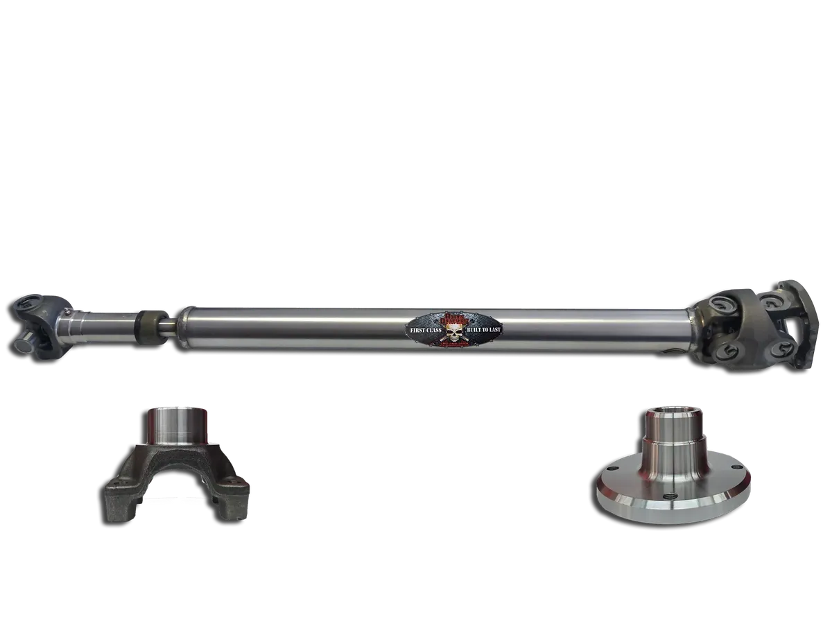 8. This Item will include the following parts: (1) 2 1/2 inch X .95 Wall Extreme Duty 1310 CV Driveshaft with Spicer Solid U-joints. Lifetime Warranty if you twist our tube, break a weld, or Break a U-joint in half due to Torque. (1) American Made 1310 Rear Transfer Case Output Shaft Yoke. (1) American Made Forged 1310 Rear JL Sahara Pinion Yoke. (1) Set of Heavy Duty 1310 U-bolts (1) Set of Grade 10 CV Bolts. There is four bolts total and they have small heads on them so they are easier to install. Driveshafts come painted Gloss Black Show Quality. This is drop ship item. Most orders ship within 3-5 days.