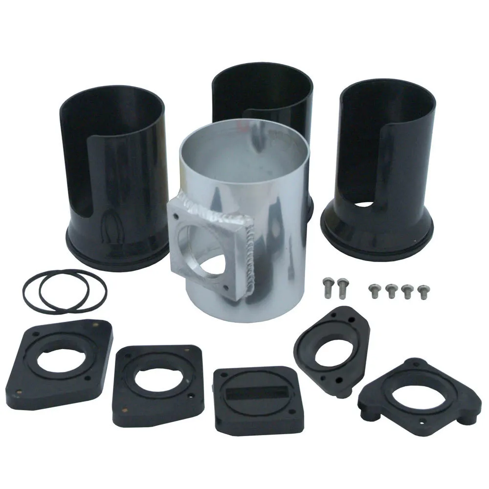 Intake Tube Adapter - Mass Air Sensor to 3 in Tube - Calibration Inserts - Aluminum - Polished - Universal - Kit