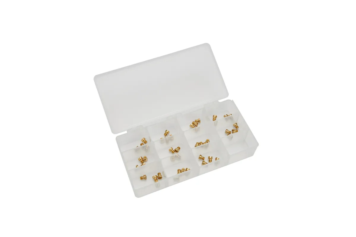 Carburetor Air Bleed Tuning Kit for High-Speed System Kit Includes No. 25 through No. 35 Air Bleeds Contains 4 of Each Size Air Bleed Comes Complete With Carrying Case Sold As One Kit