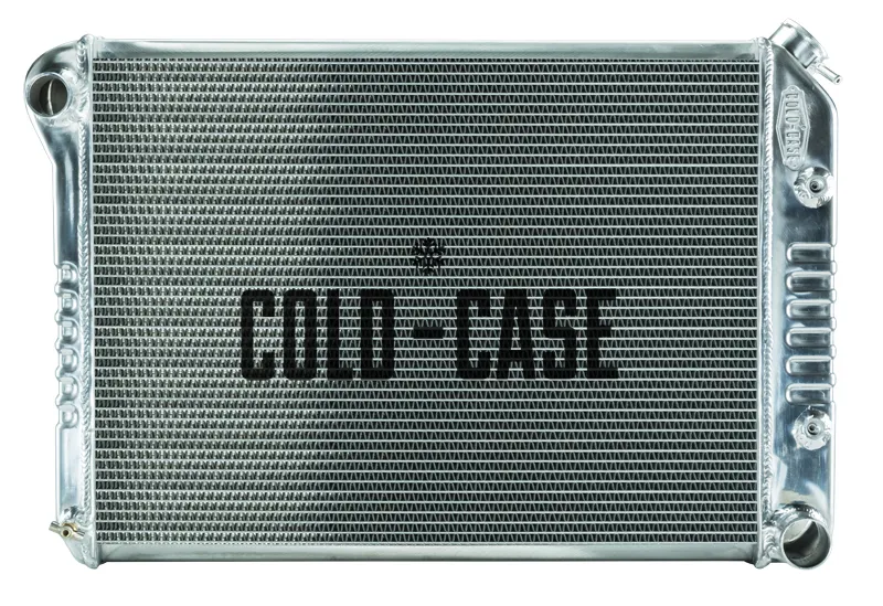 1968-1979 Chevrolet Nova Aluminum Performance Radiator. MT Transmission. Big Block version. Comes without brackets. For bracket version, see CHC11. These COLD-CASE radiators are Tig welded 100 percent aluminum and absolutely beautiful. Don't buy a 3 or 4 row aluminum radiator! It doesn't cool as good as these oversize 2 row models. These radiators are original appearing and have the correct stamping. Once painted, you'd be hard pressed to find a difference over an original versus a COLD-CASE. 100 percent TIG welded All Aluminum Polished OE style tanks (2) 1.25 inch Tubes 16 fins per inch Corrugated fins that give more surface area and more thermal transfer Pressure tested For Manual transmission Direct fitment for 68-79 Nova w/ Big Block Old Part Number: RPE548ATF Radiator Specs Core Height 16.85 inch Core Width 23 inch Overall Height 19 inch Overall Width 28.35 inch Overall Thickness 3 inch Tubes (2) 1.25 inch Tubes Upper Hose 1.50 inch Lower Hose 1.77 inch