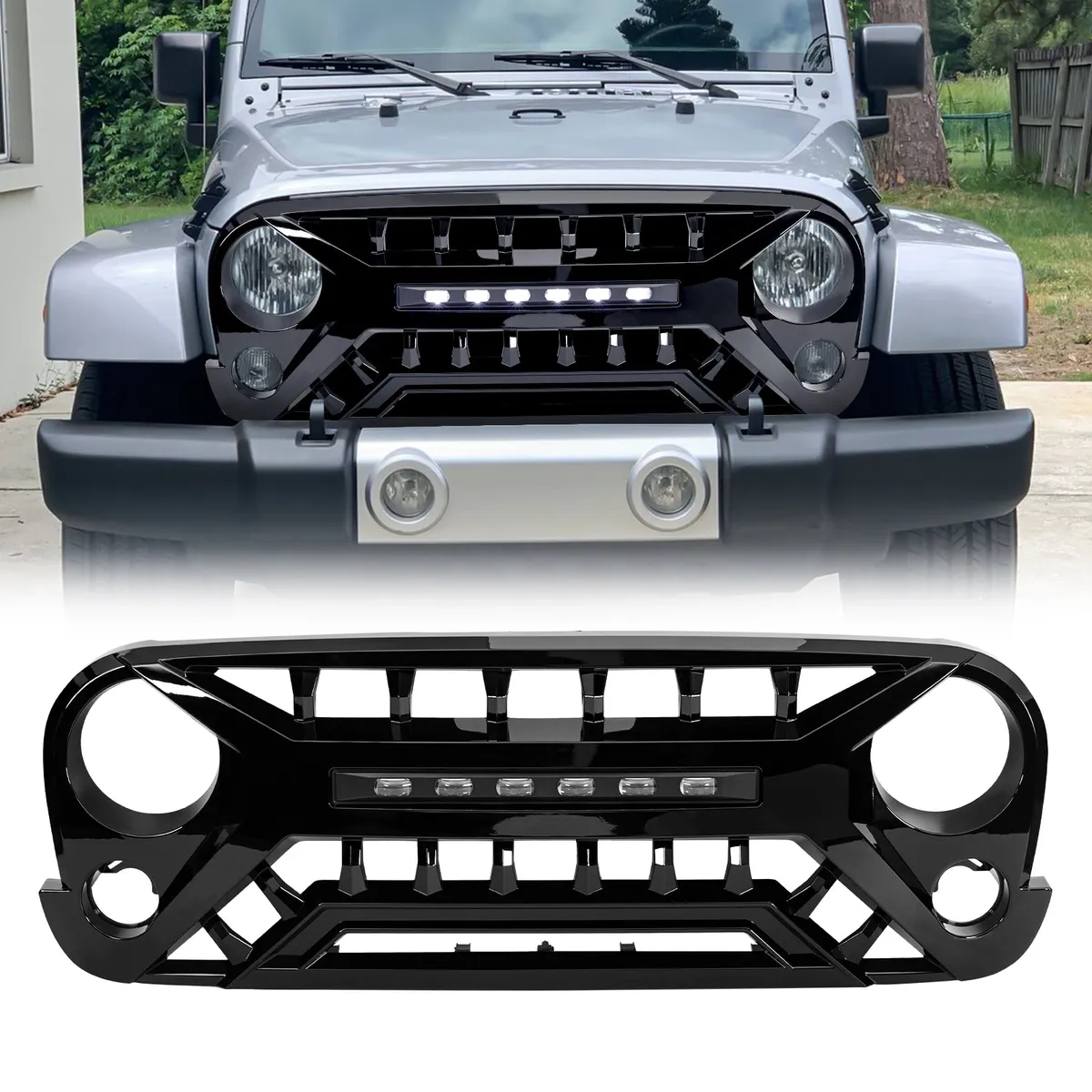 Armor Grille W/ Off-Road Lights - Glossy Black For 07-18 Jeep Wrangler JK