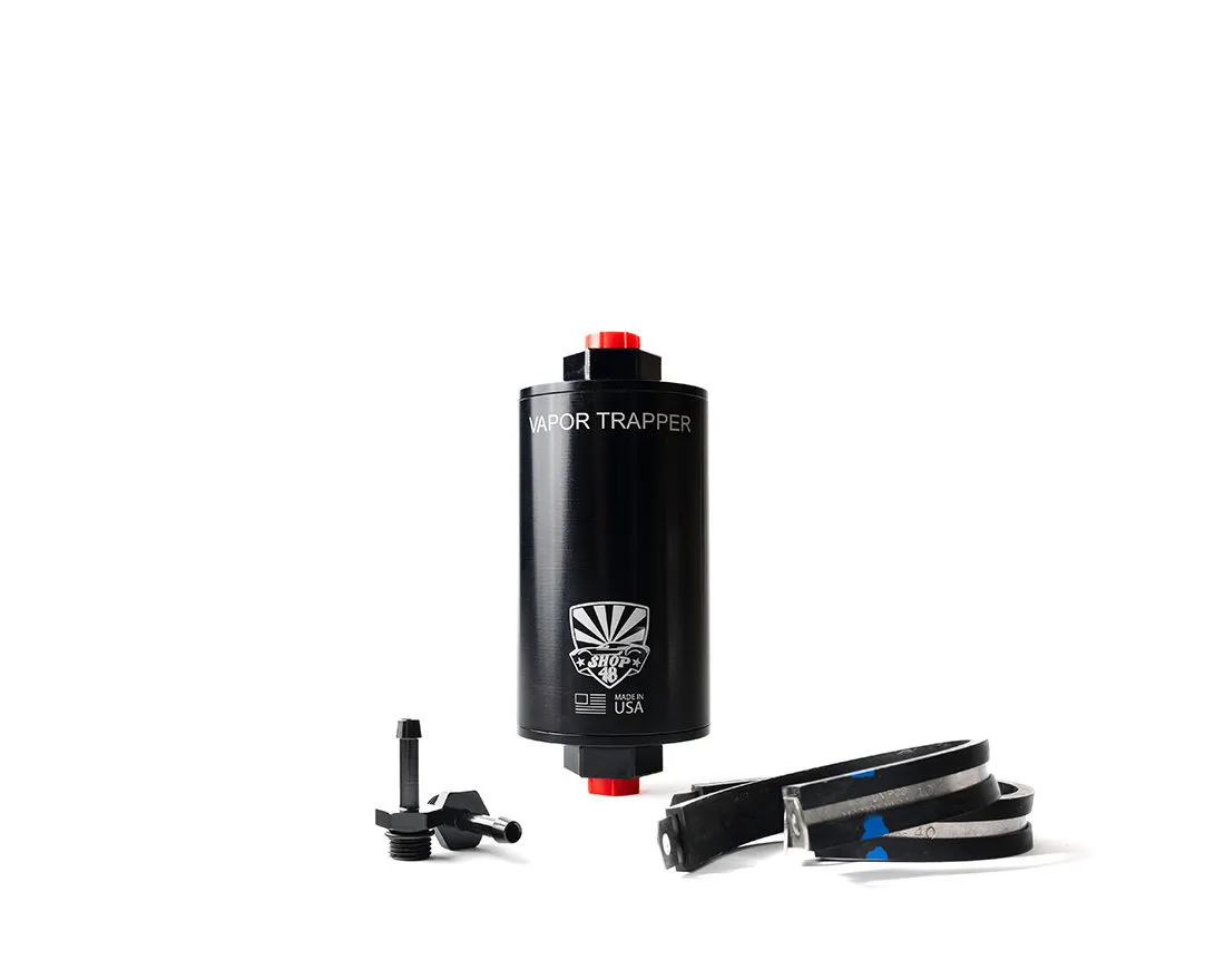 - Shop48 Vapor Trapper - 4 in Long - 6 AN Female O-Ring Inlet - 6 AN Female O-Ring Outlet - 1/4 in Fittings / Dell Clamps Included