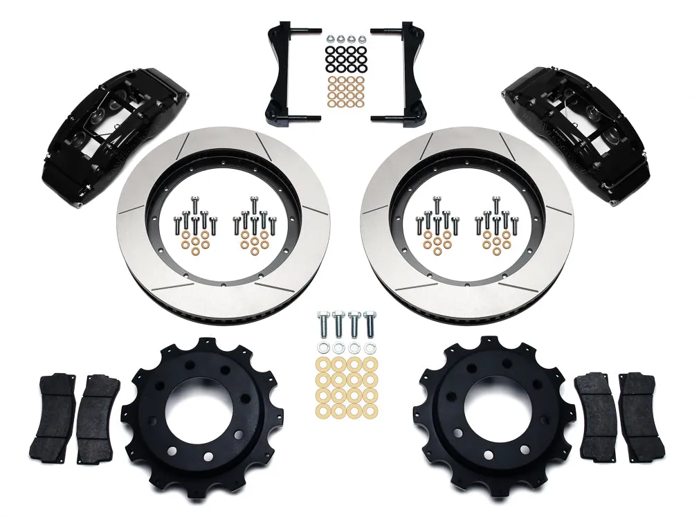 TC6R rear axle disc brake kits with 16” rotors are the ultimate big brake solution for highly customized and modified trucks or SUV's upgraded to larger than stock wheels. TC6R kits can fit many 20”and larger wheels (Verify your wheel interior clearance to the wheel clearance diagram in the installation instructions before purchase). TC6R kits replace the factory disc brakes and use the OE parking brake assembly as a compliment to front big brake upgrades. TC6R calipers, BP-10 compound pads, and oversized rotors are matched to the OE master cylinder output, ABS function, and individual vehicle bias requirements of each vehicle. These combined enhancements provide the necessary control over big wheels and tires to provide safe stopping on heavy weight vehicles.