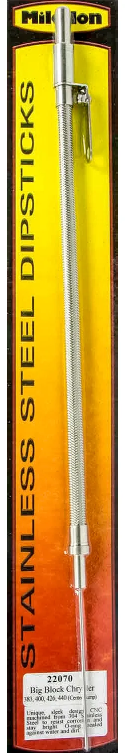 Engine Oil Dipstick - Block Mount - Billet / Braided Stainless - Natural / Polished - Mopar B / RB-Series - Each