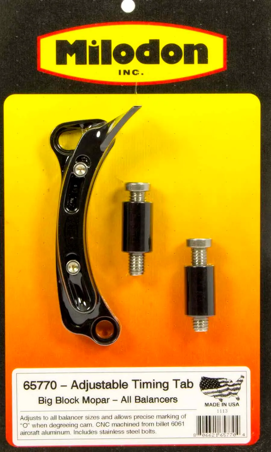 Timing Pointer - Adjustable - Stainless Hardware - Aluminum - Black Anodized - 6 to 8 in OD Balancer - Mopar B / RB-Series / 426 Hemi - Each