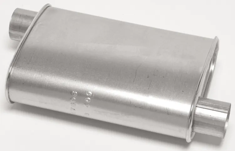 - Thrush Turbo - 2.5 in Offset Inlet - 2.5 in Offset Outlet - 14 x 4.25 x 9.75 in Oval Body - 18.5 in Long