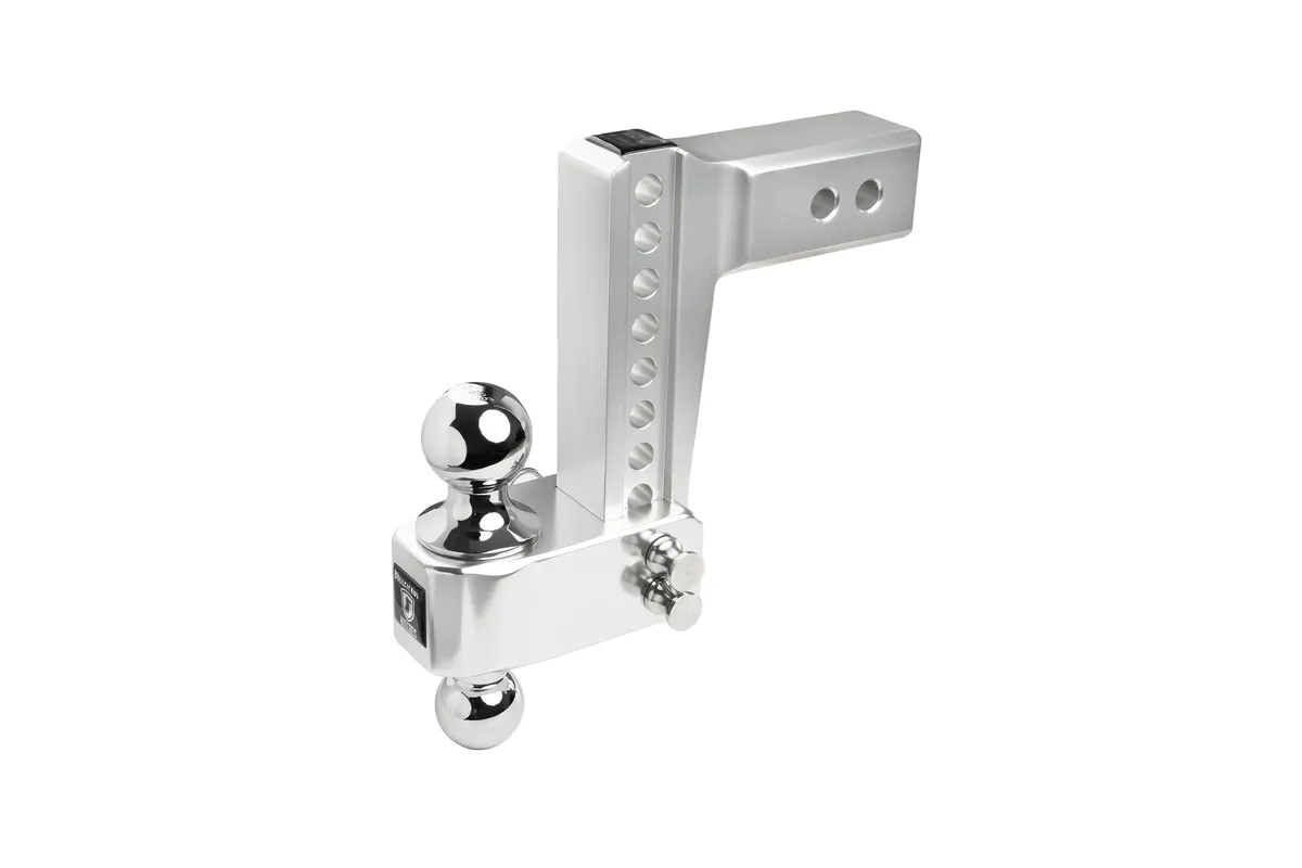 The BulletProof Medium Duty 2.5” shank, 6” drop/rise Aluminum Hitch is the ultimate choice whether you are towing for work or for fun. With a max towing capacity of 14,000 lbs. and 2,000 lbs. of tongue weight, our Aluminum Hitches are the highest rated on the market. Built from 6061 T6 grade aluminum to be lightweight yet still offer the same high weight capacities you have come to trust from BulletProof Hitches. We know how important the fit of the hitch is, that is why our hitches are machined to an extremely tight tolerance for a precision fit. Polished for a sleek look to accent any vehicle and guaranteed to never rust. This aluminum hitch comes with our standard chrome finished 2” & 2-5/16” dual ball that is adjustable in 1” increments. Includes two 5/8" corrosion resistant pins and R-clips to secure it into the channel. One great feature of our 6” drop/rise Aluminum hitch is the ability to rotate the dual ball and store it behind the channel of the hitch! It offers 8 levels of adjustment to ensure you are towing level, which allows for a safer and more comfortable towing experience. This hitch is the perfect choice for trucks with a receiver height of 20”-21” (measured from level ground to the bottom of the receiver tube). It has an overall length of 10-5/8”. Pair it with our BulletProof Locking Pin for additional peace of mind when leaving your hitch mounted on your vehicle. Please note, only one locking pin is compatible with the aluminum hitch dual ball. Backed by our lifetime, no-hassle warranty. *BulletProof Aluminum Hitches are NOT compatible with our line of accessories